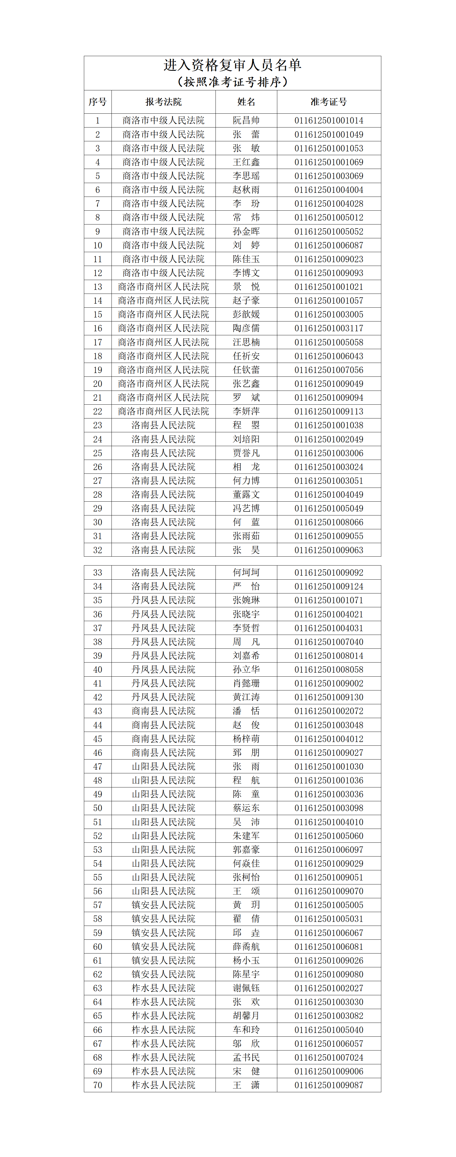 參加資格復(fù)審人員以所報(bào)考法院的考生綜合成績(jī)排名及招聘計(jì)劃2倍的比例,由高到低確定(進(jìn)入資格復(fù)審人員名單詳見(jiàn)附件)。